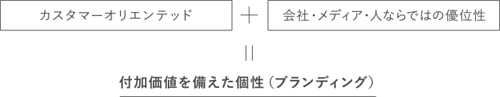 「カスタマーオリエンテッド」をベースに、その会社・メディア・人ならではの優位性をそなえた付加価値を加えること。
